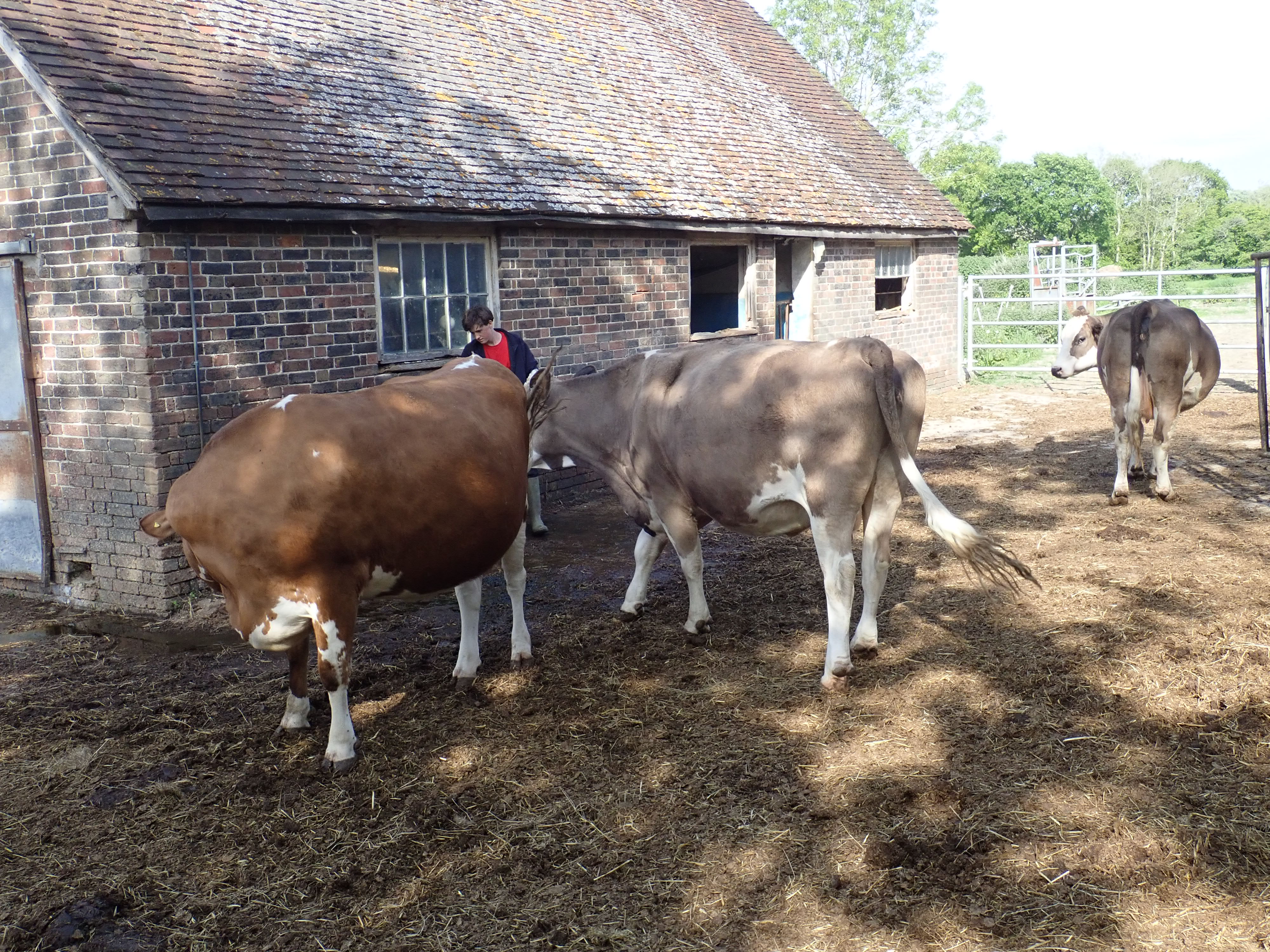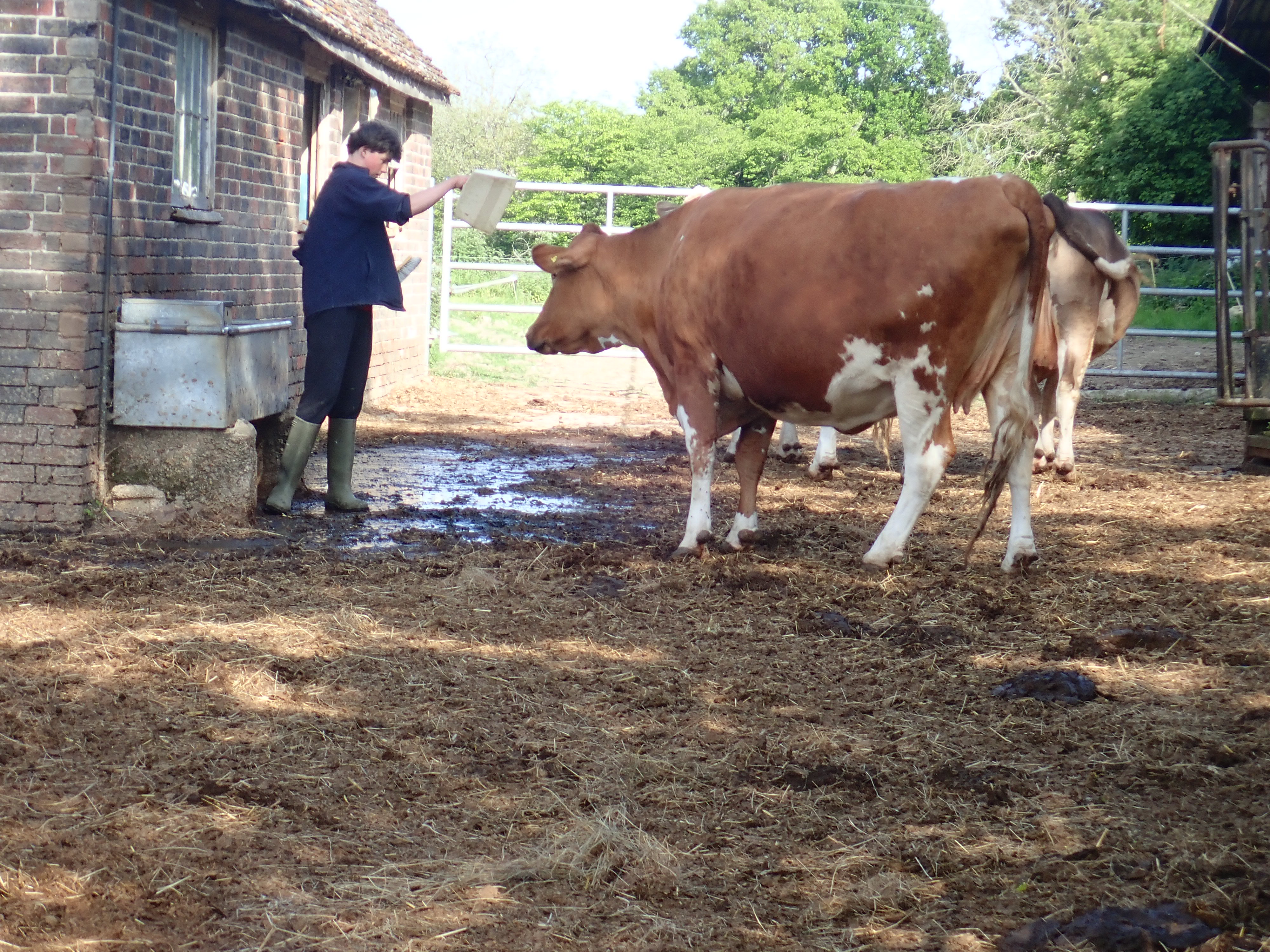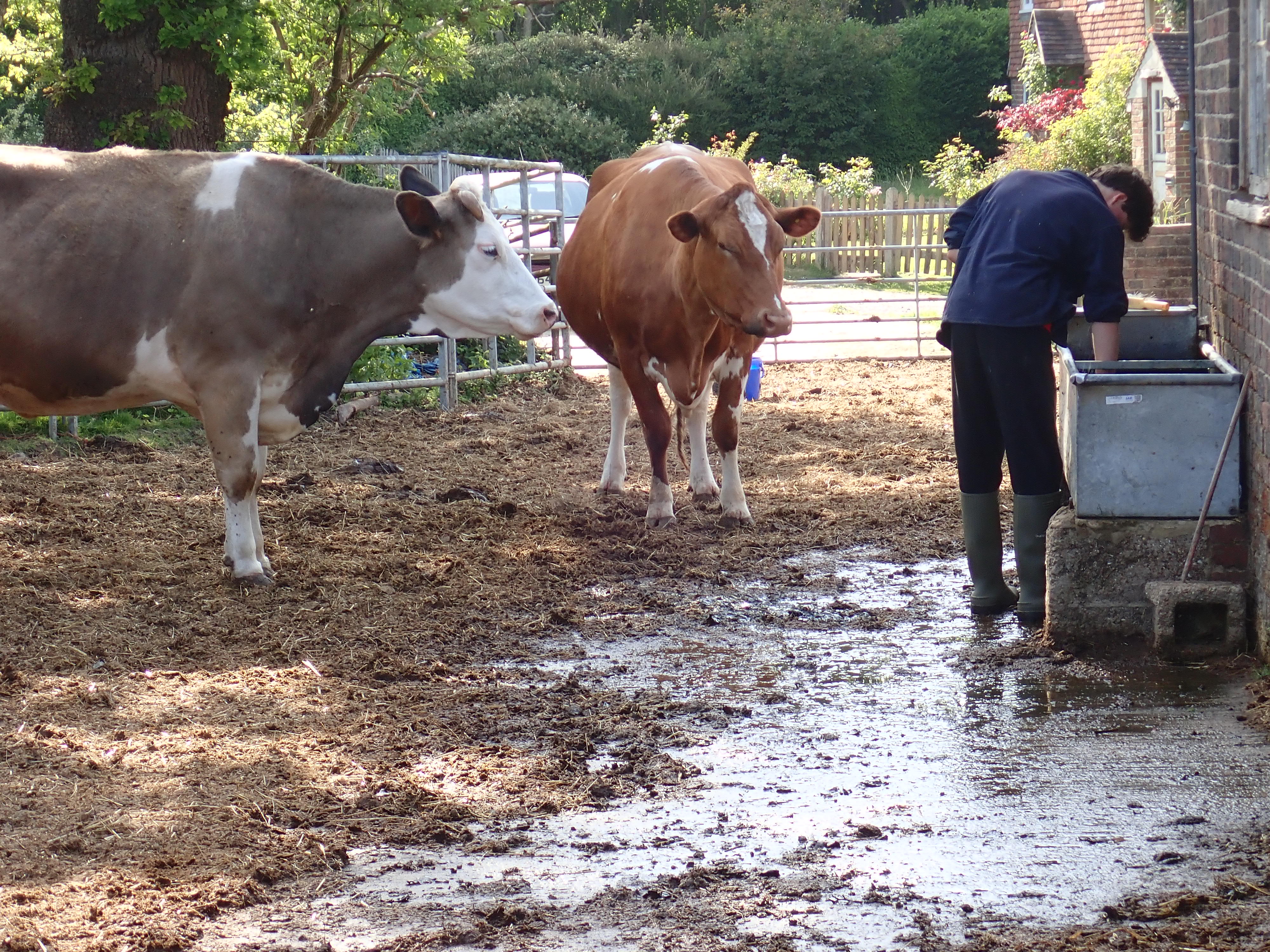 Running a farm is incredibly hard work and there’s always a long list of jobs to do, so sometimes it’s great to call in your friends to give you a hand. We were all given jobs to do and I was put to work emptying, cleaning out and refilling a water trough. However, this water trough was located up against an old building right in the middle of the cows yard!
